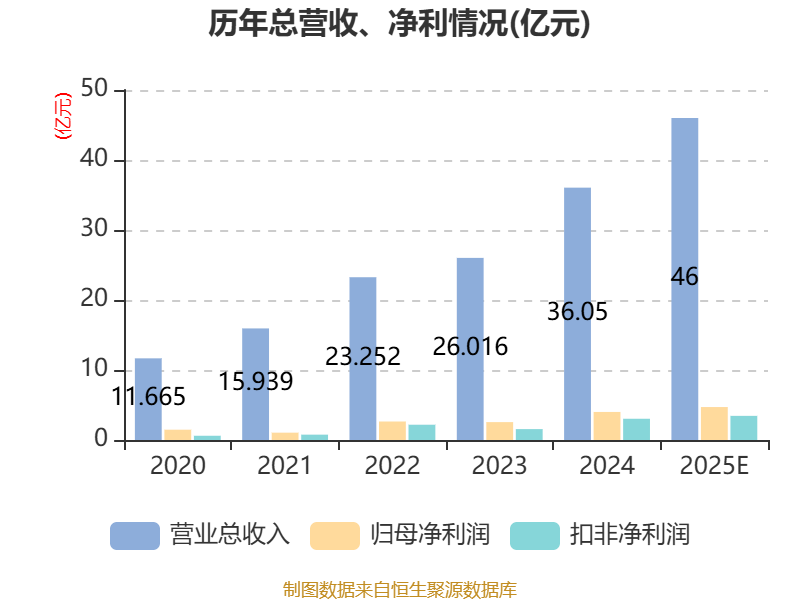 同时,经过多年布局,公司半导体精密零部件基地已陆续投产,半导体精密零部件产品线迅速拓展,另外得益于供应链本土化进程的加速,公司第二增长曲线半导体精密零部件产品收入持续增长。公司预计2025年度实现营业收入约46亿元,较上年同期增长约28%。