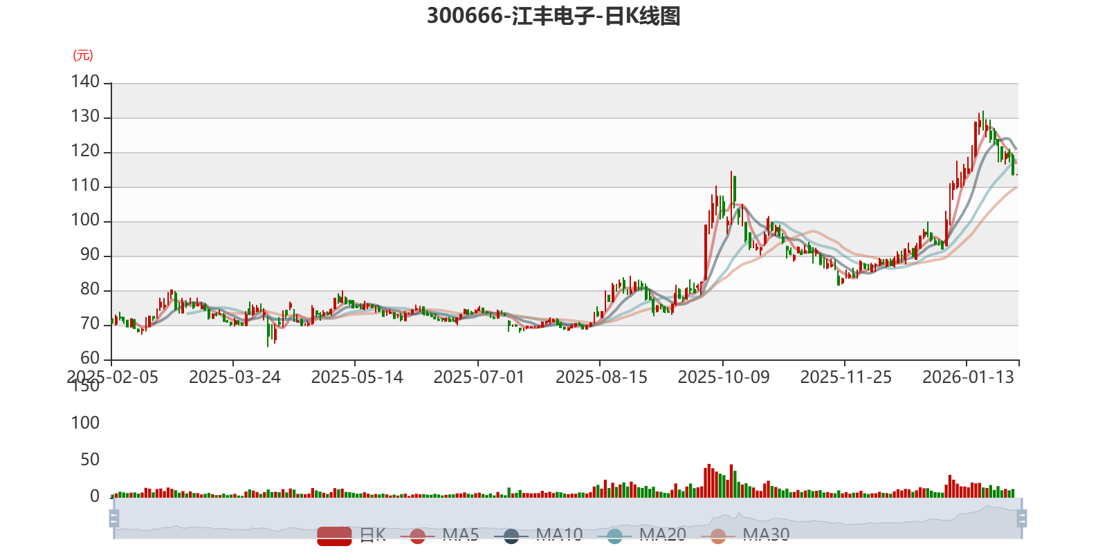 中证智能财讯江丰电子(300666)1月30日晚间披露2025年度业绩预告,预计2025年实现营业收入46亿元,同比增长28%;归母净利润4.31亿元至5.11亿元,同比增长7.5%-27.5%;扣非净利润预计3.05亿元至3.85亿元,同比增长0.36%-26.75%。以1月30日收盘价计算,江丰电子目前市盈率(TTM)约为58.96倍-69.92倍,市净率(LF)约6.19倍,市销率(TTM)约6.55倍。