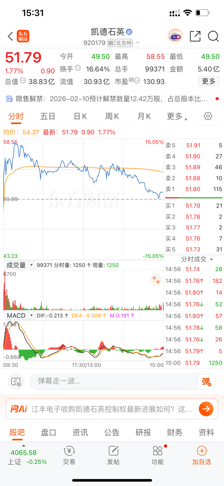 $江丰电子(SZ300666)$ 凯一早就冲高回落,搞不懂你们都不看的吗?还追高?