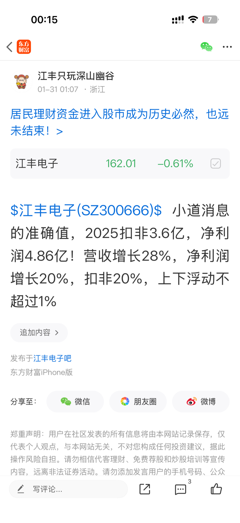 温馨提示: 1.根据《证券法》规定,禁止编造、传播虚假信息或者误导性信息,扰乱证券市场;2.用户在本社区发表的所有资料、言论等仅代表个人观点,与本网站立场无关,不对您构成任何投资建议。用户应基于自己的独立判断,自行决定证券投资并承担相应风险。《东方财富社区管理规定》
