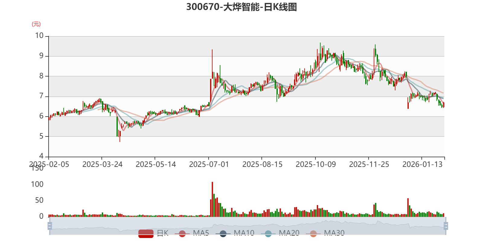 中证智能财讯大烨智能(300670)1月30日晚间披露2025年度业绩预告,预计2025年归母净利润亏损1.8亿元至2.1亿元,上年同期盈利793.57万元;扣非净利润亏损1.5亿元至1.8亿元,上年同期亏损1.08亿元。以最新收盘价计算,市净率(LF)约3.71倍,市销率(TTM)约8.09倍。