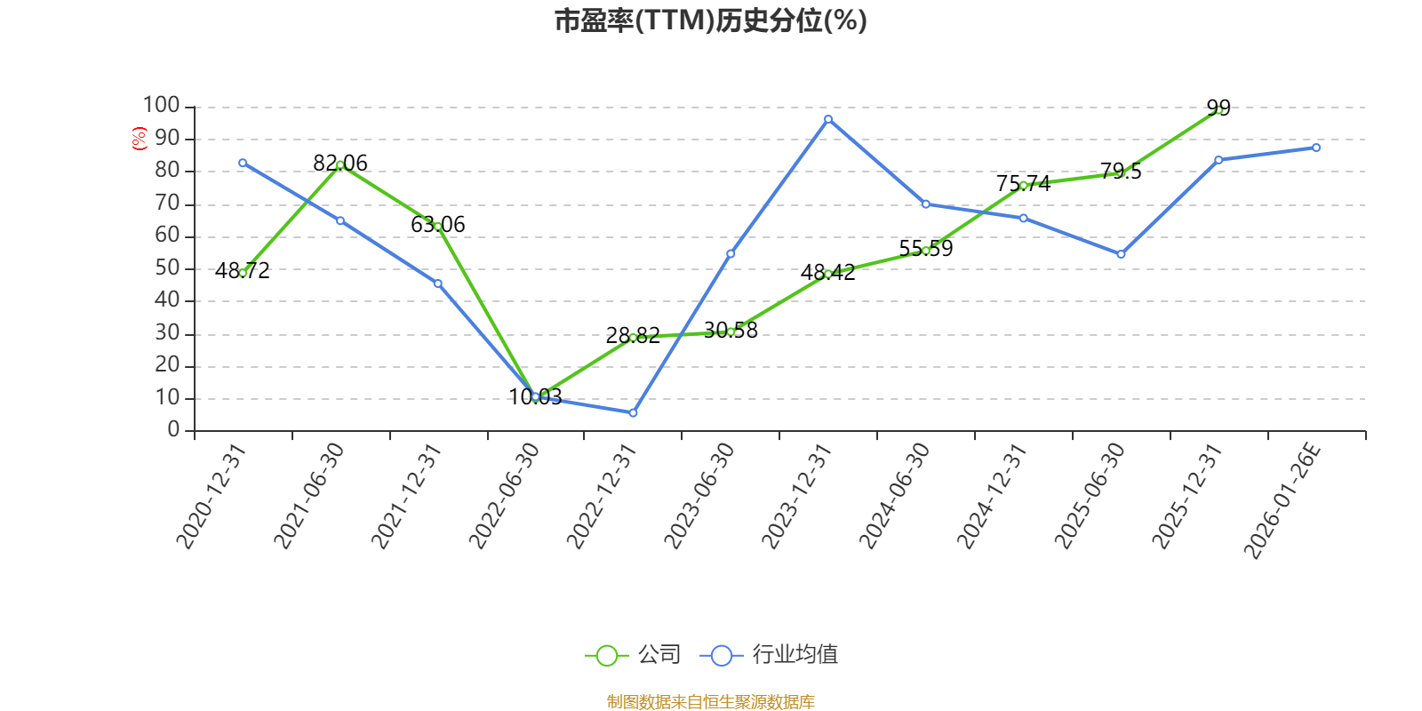 以本次披露业绩预告均值计算,公司近年市盈率(TTM)图如下所示: