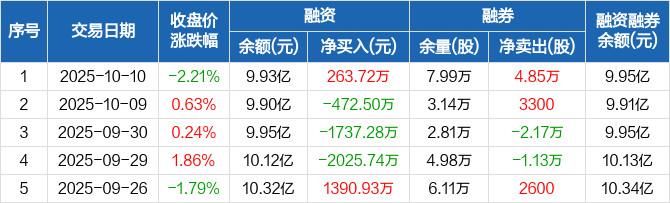 宇信科技:融资净买入263.72万元,融资余额9.93亿元(10-10)