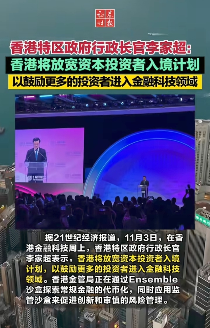 香港特首李家超:香港将放宽资本投资者入境计划 引投金融科技。港监会行政总裁梁凤仪:香港将放宽持牌加密货币交易平台接入全球资金池。