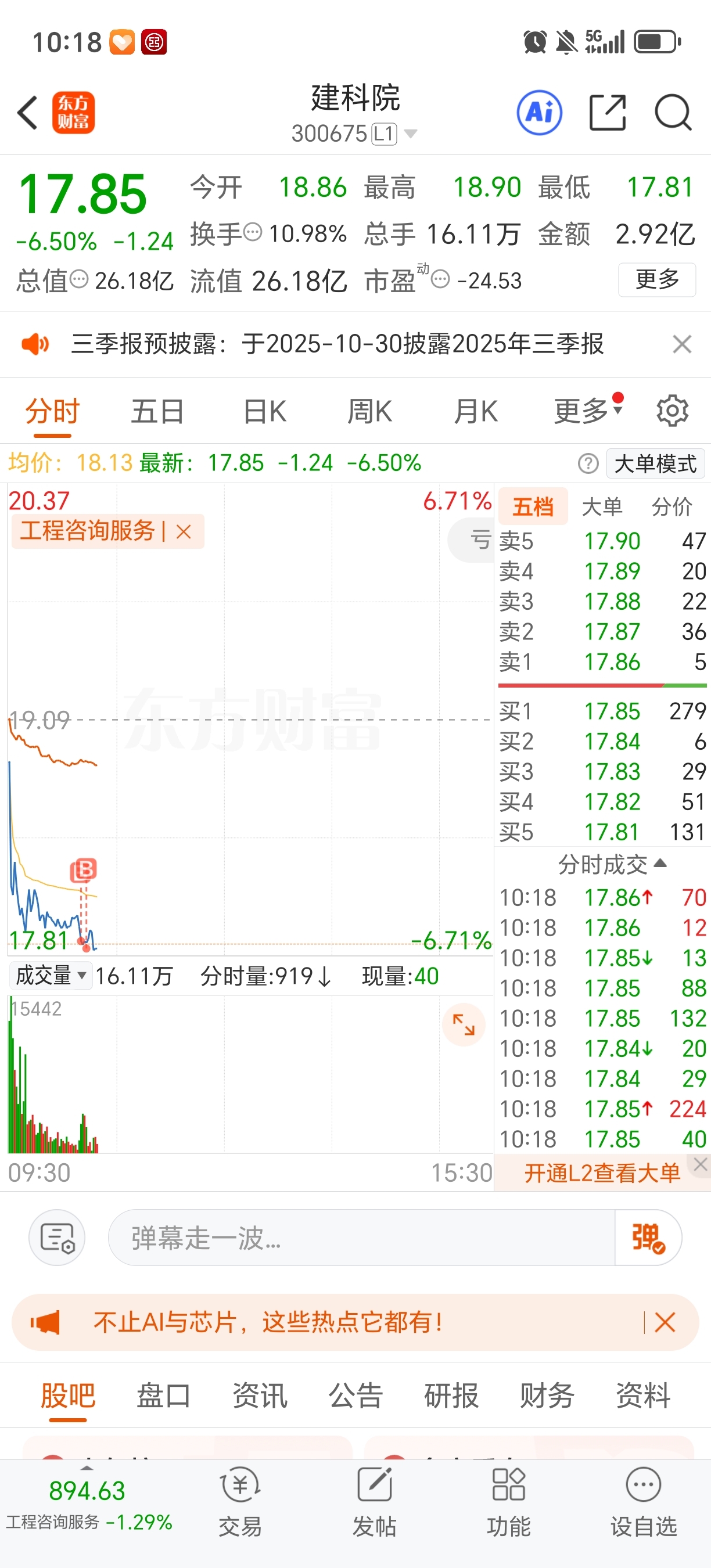 $建科院(SZ300675)$ 18以下买入被套,自己活该,拔网线了!拜拜您乃!