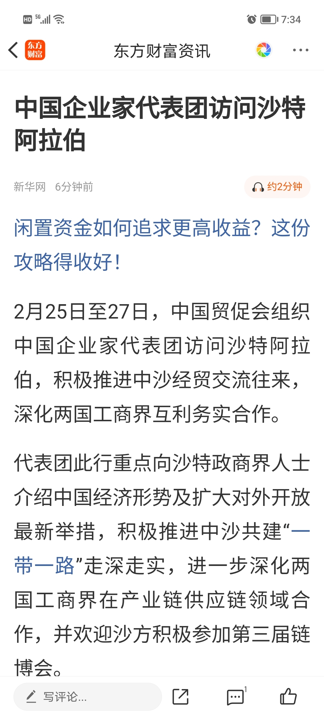 $华大基因(SZ300676)$ 中国贸促会副会长于健龙率中国企业家代表团拜会沙特商会联合会、沙特基础工业公司,调研沙特龙城、华大基因沙特精准医学实验室等,举行中国—沙特企业家座谈会、中国—沙特企业家圆桌会两场交流活动。