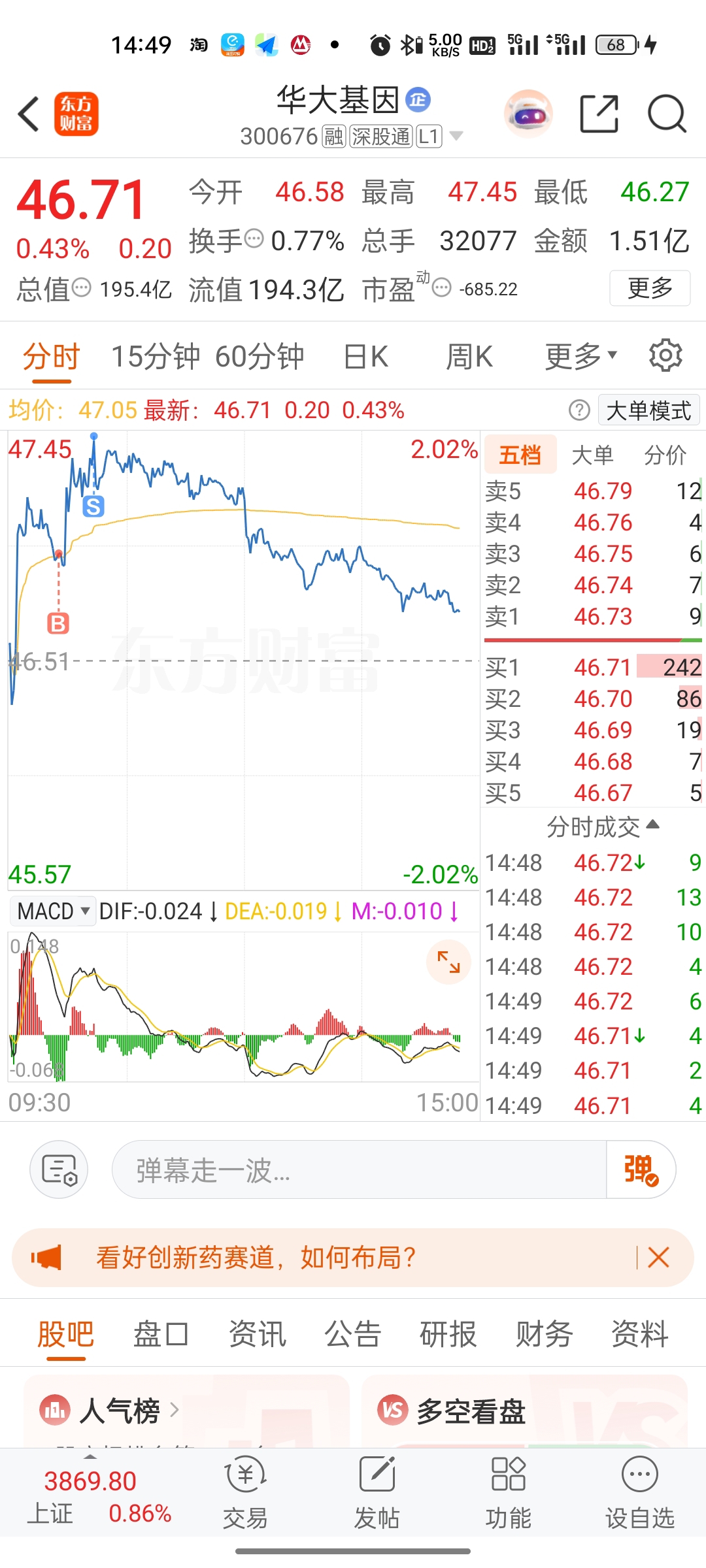 $华大基因(SZ300676)$ 太恶心了,我是真服了,能拉到51我就跑不