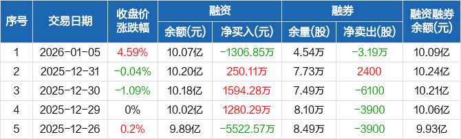 华大基因:融资净偿还1306.85万元,融资余额10.07亿元(01-05)