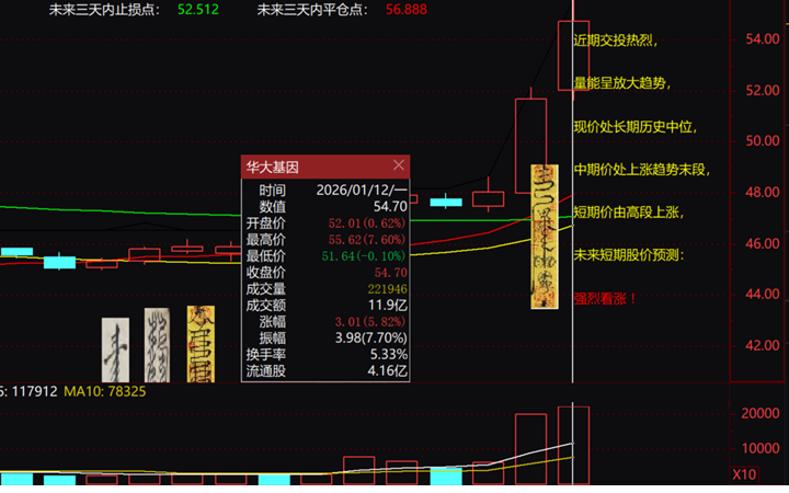 祝(300676)三日内见(56.8)