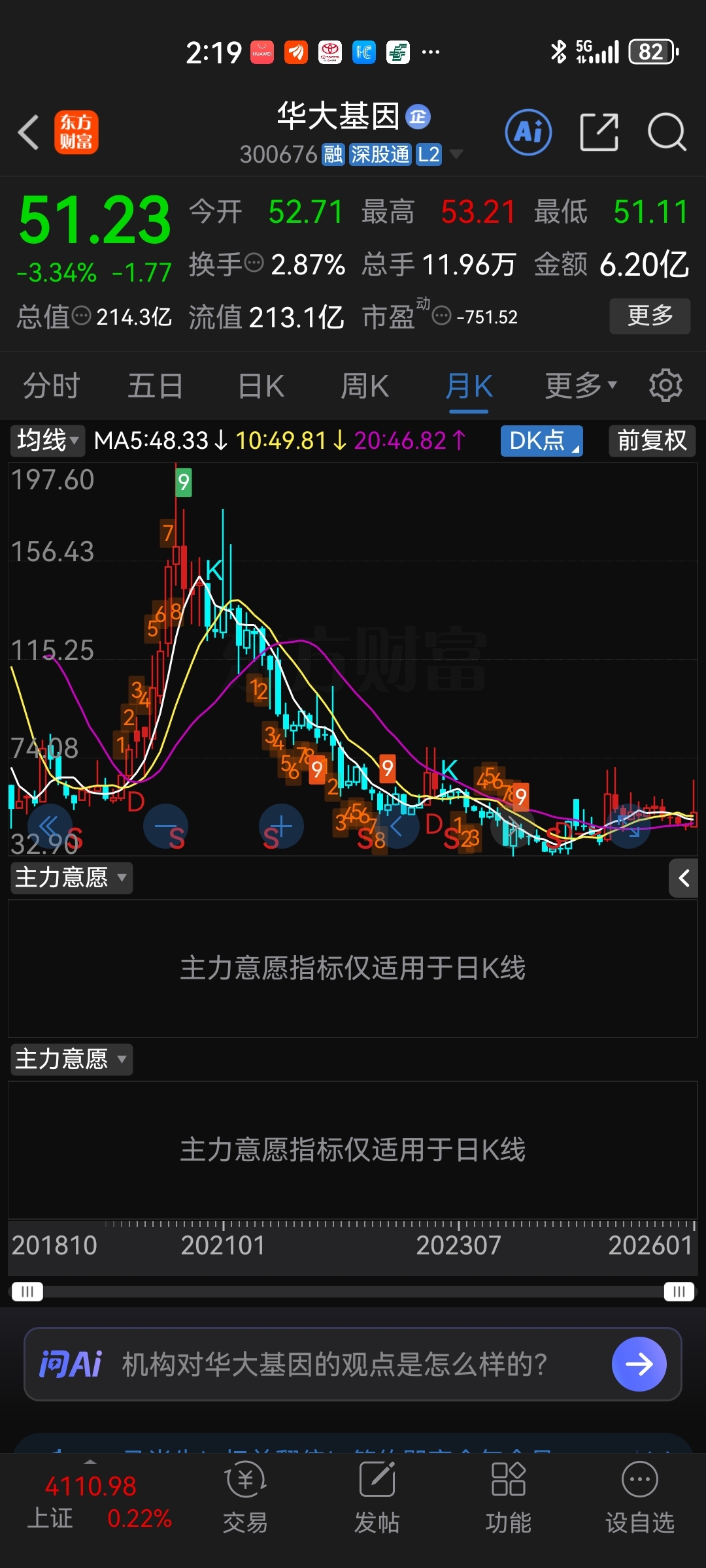 $华大基因(SZ300676)$ 才刚刚起来就按下去?