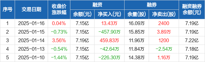 英科医疗:融资净买入13.43万元,融资余额7.15亿元(01-16)