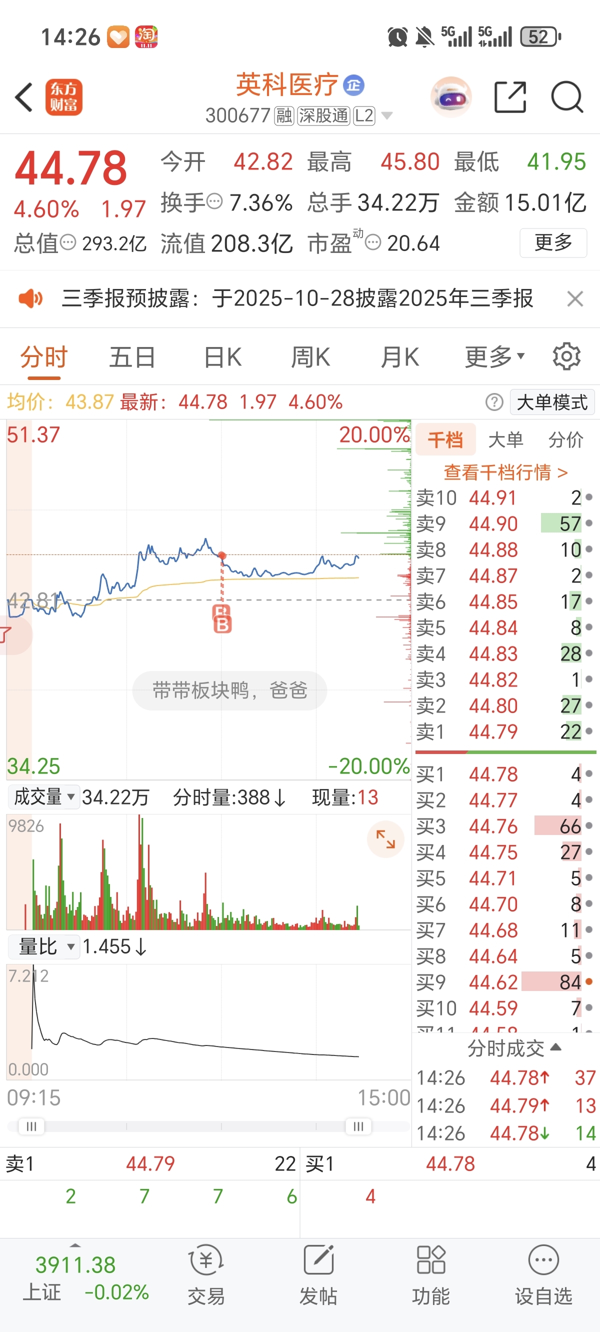 $英科医疗(SZ300677)$ 一买入就成强压力位了?