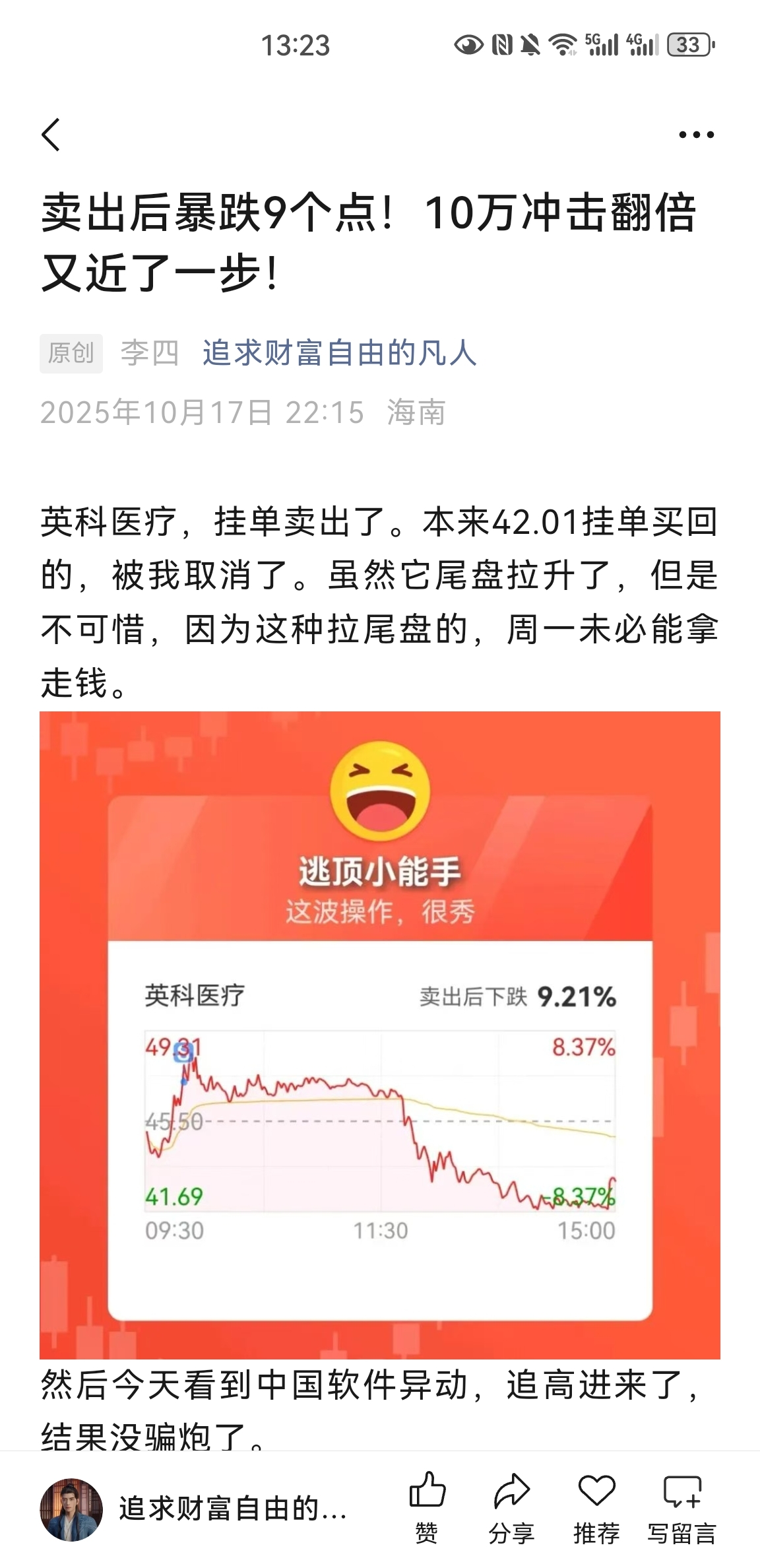 $英科医疗(SZ300677)$ 我这操作牛不牛??哈哈哈
