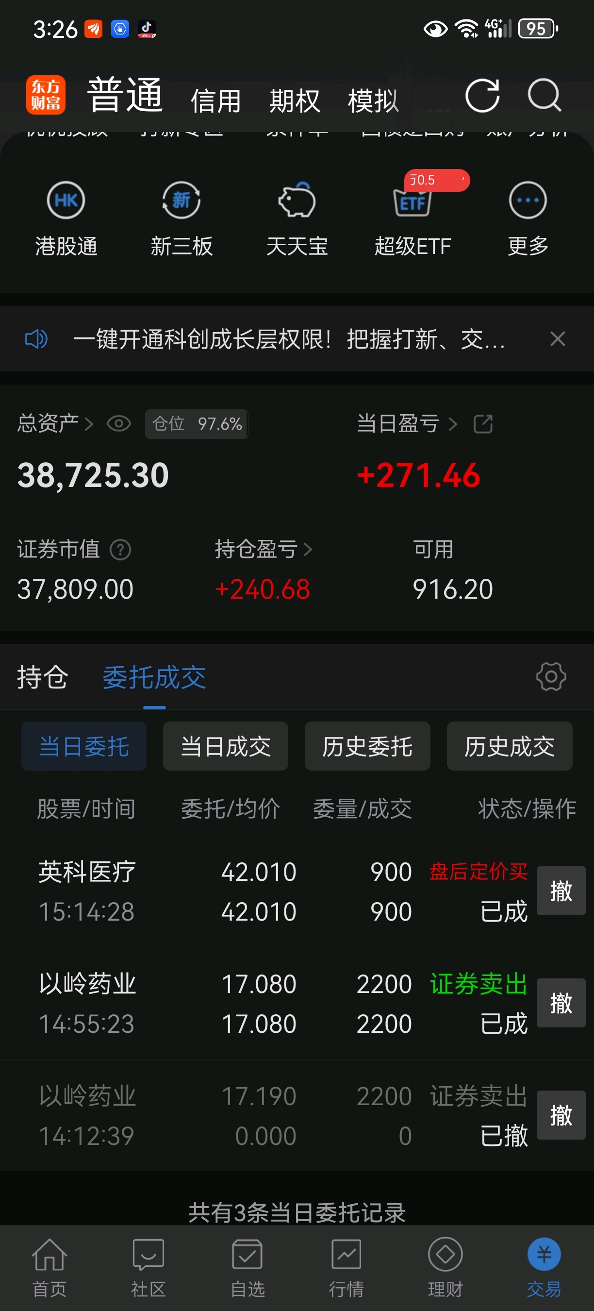$英科医疗(SZ300677)$ 15:14的9手是我买的