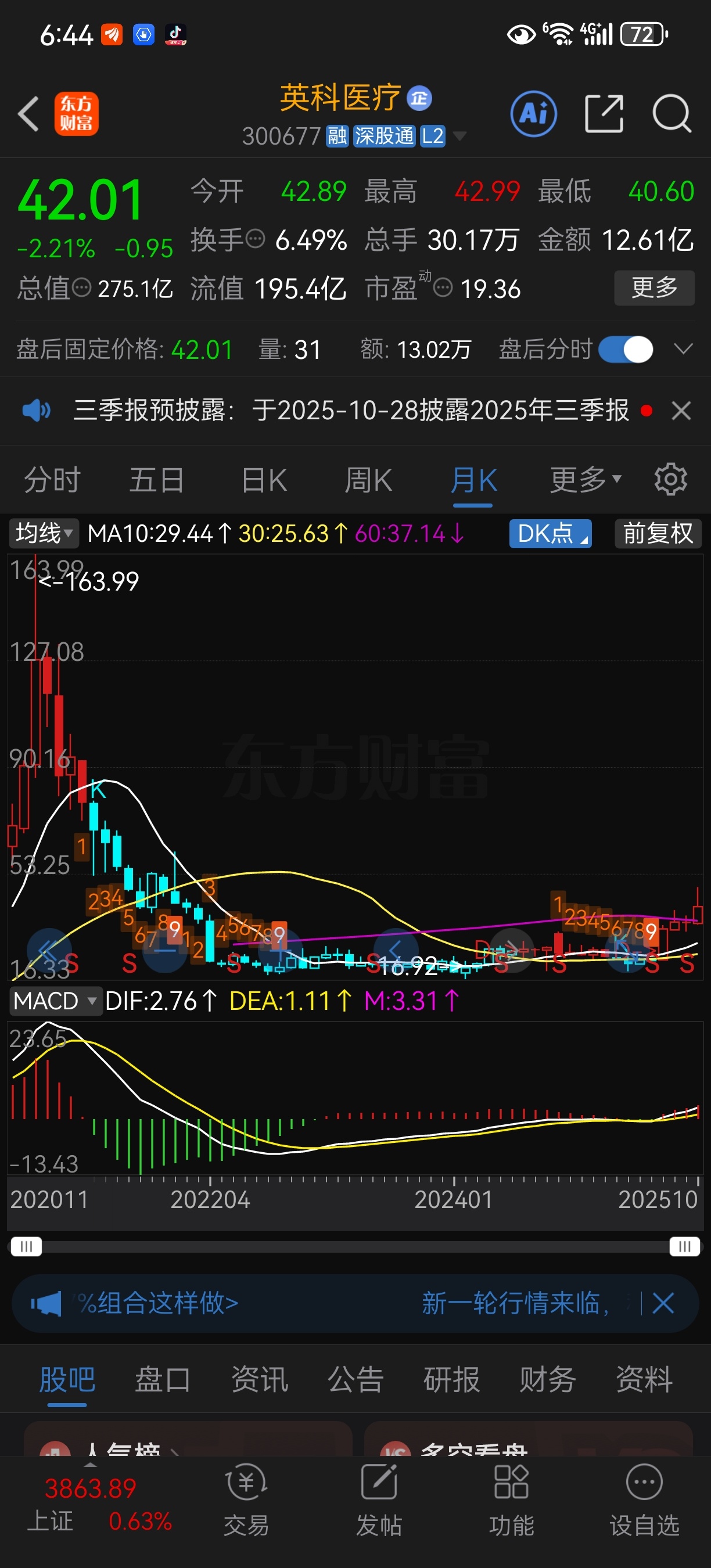 月线级别的底部构筑得相当结实,现在已经站上了十月均线,三十月均线和六十月均线,多头排行已经形成!