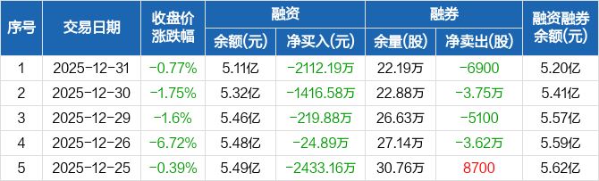 英科医疗:融资余额5.11亿元,创近一年新低(12-31)