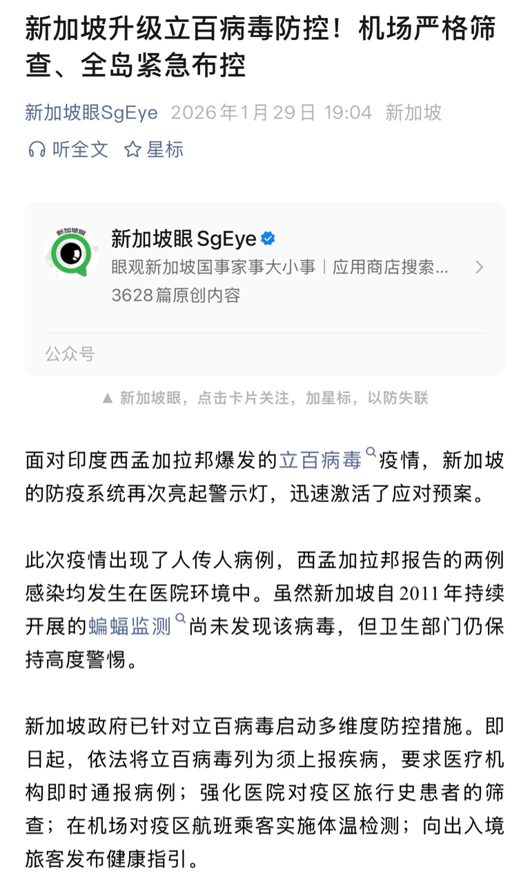 新加坡病毒防控升级
