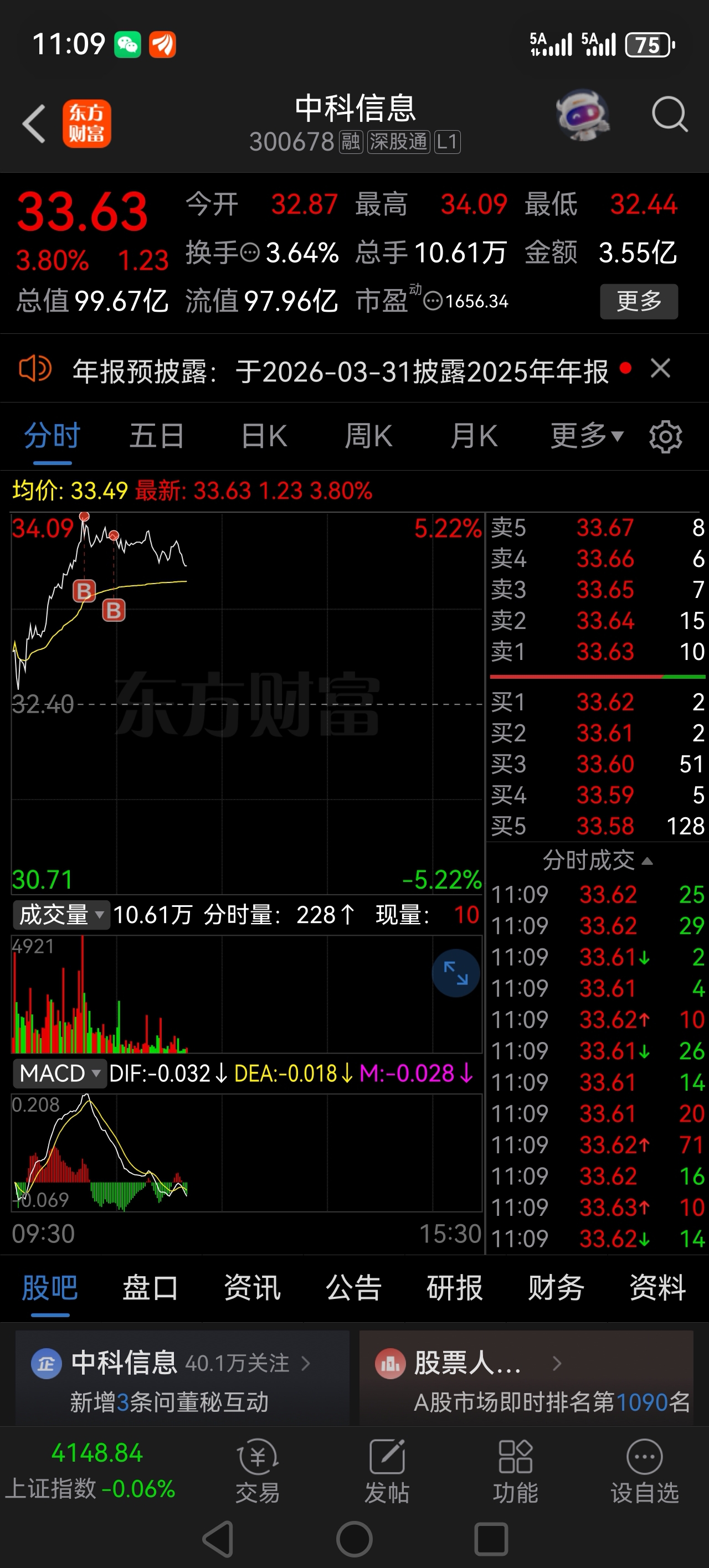 $中科信息(SZ300678)$ 完了完了!今天是成功的套山顶上了