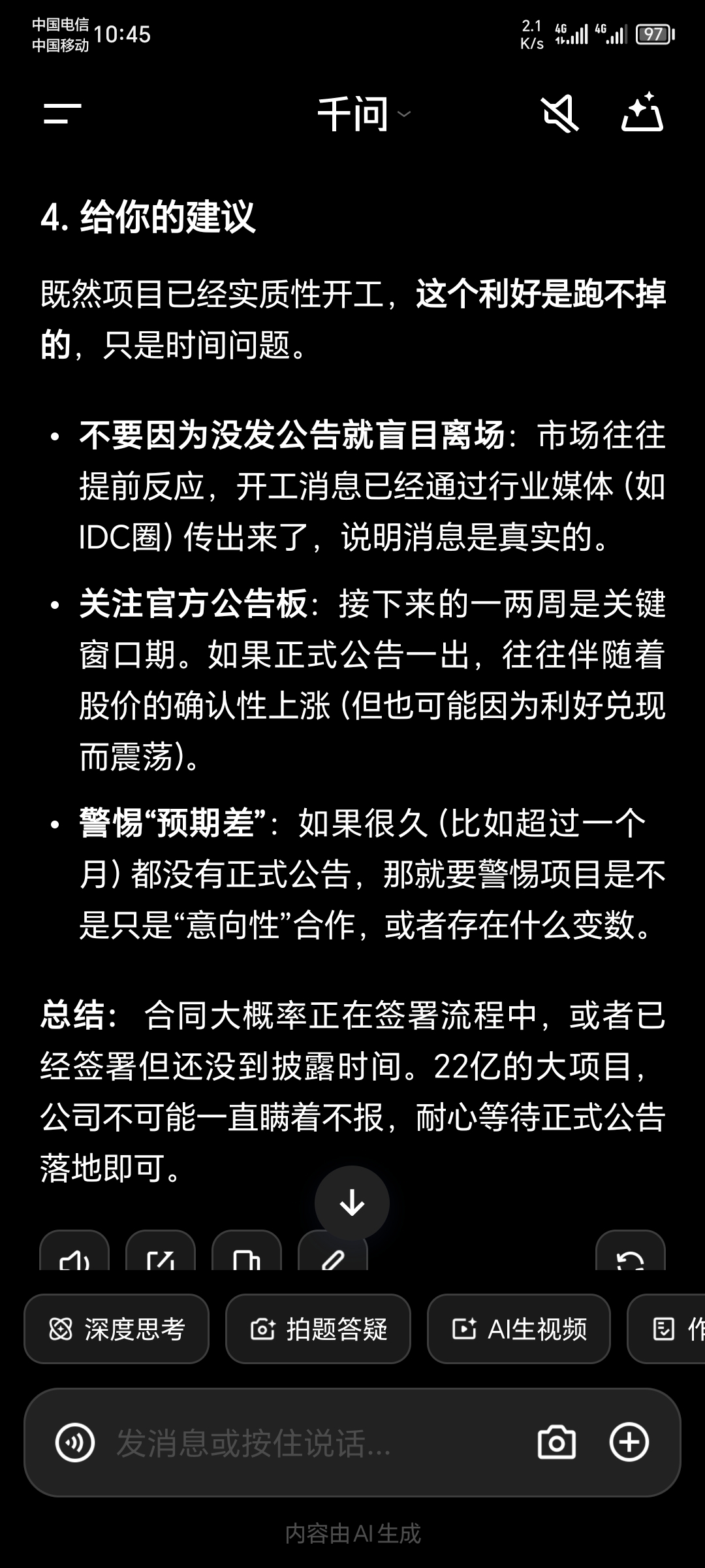 温馨提示: 1.根据《证券法》规定,禁止编造、传播虚假信息或者误导性信息,扰乱证券市场;2.用户在本社区发表的所有资料、言论等仅代表个人观点,与本网站立场无关,不对您构成任何投资建议。用户应基于自己的独立判断,自行决定证券投资并承担相应风险。《东方财富社区管理规定》