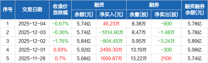 电连技术:融资净买入46.23万元,融资余额5.74亿元(12-04)