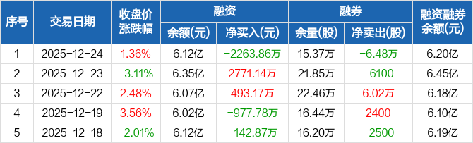 电连技术:融资净偿还2263.86万元,融资余额6.12亿元(12-24)