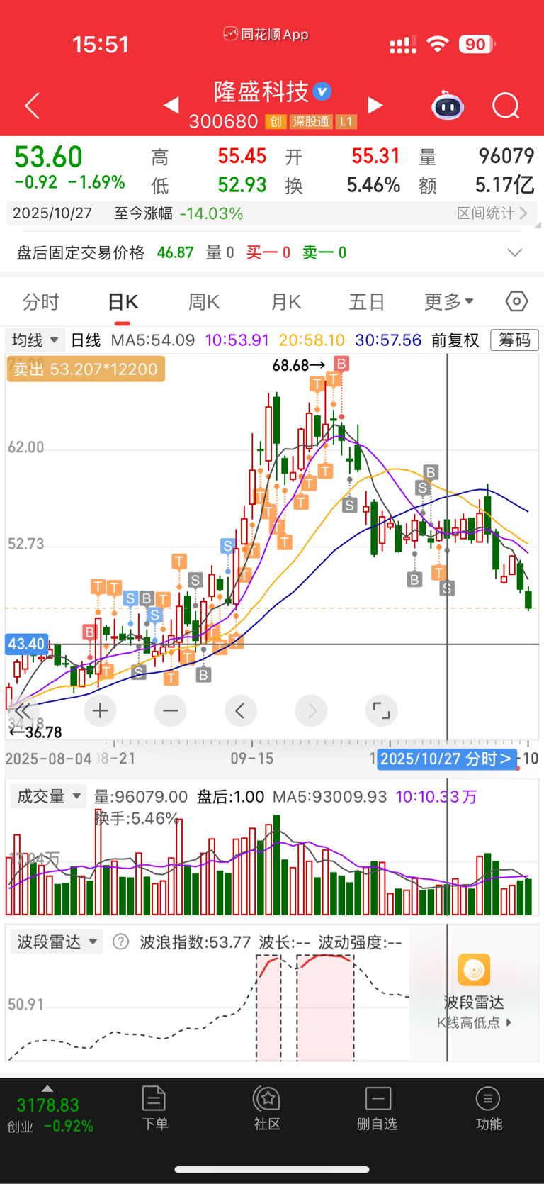 $隆盛科技(SZ300680)$ 还好27号53块全部清仓,一股没留。换了其他的涨了60%多了,真是最正确的决定了。