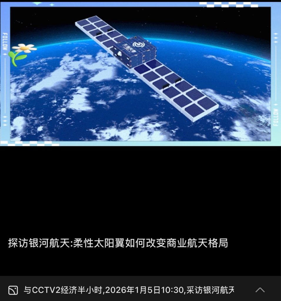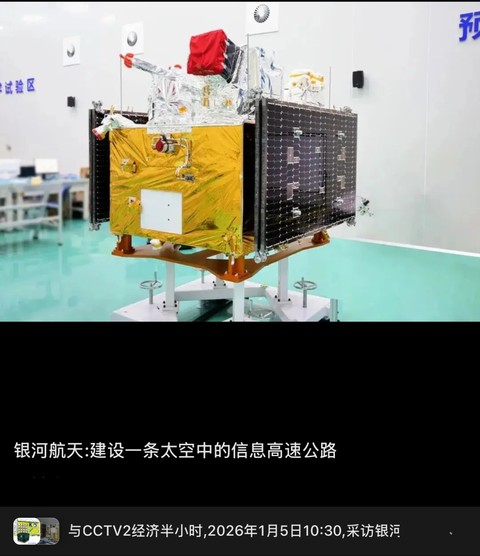 CCTV2经济半小时,2026年1月5日,采访银河航天和长光卫星,节目中很多卫星生产的镜头,介绍了重要的零部件介绍卫星和发射的成本。非常值得一看。