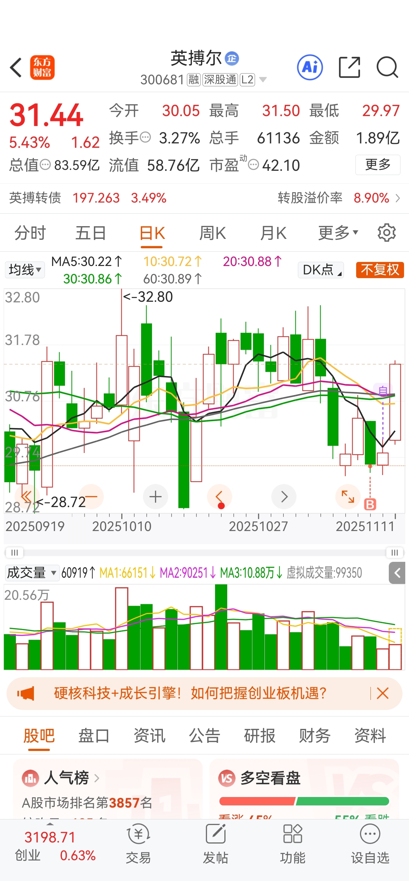 $英搏尔(SZ300681)$ 终于被我抓到了