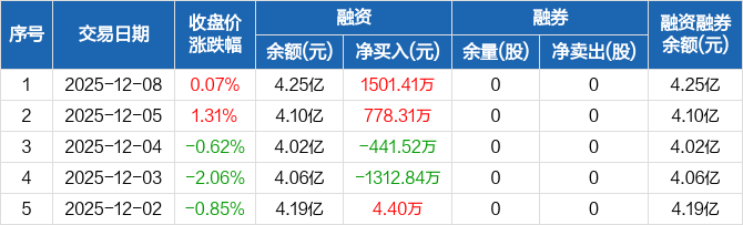 英搏尔:融资净买入1501.41万元,融资余额4.25亿元(12-08)