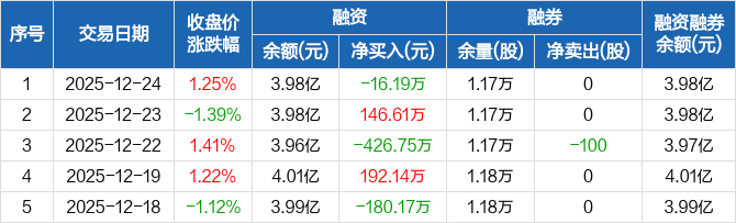 英搏尔:融资净偿还16.19万元,融资余额3.98亿元(12-24)