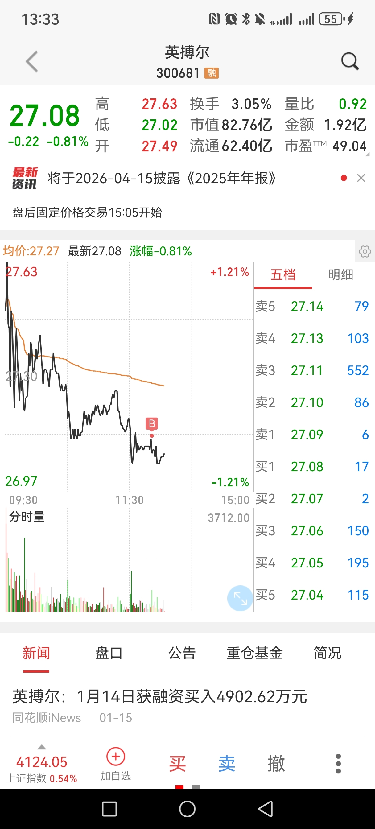 $英搏尔(SZ300681)$ 进来待两天,主力懂点事