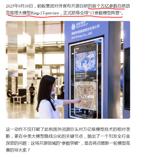 蚂蚁集团对外宣布开源自研的首个万亿参数自然语言推理大模型Ring-1T-prev