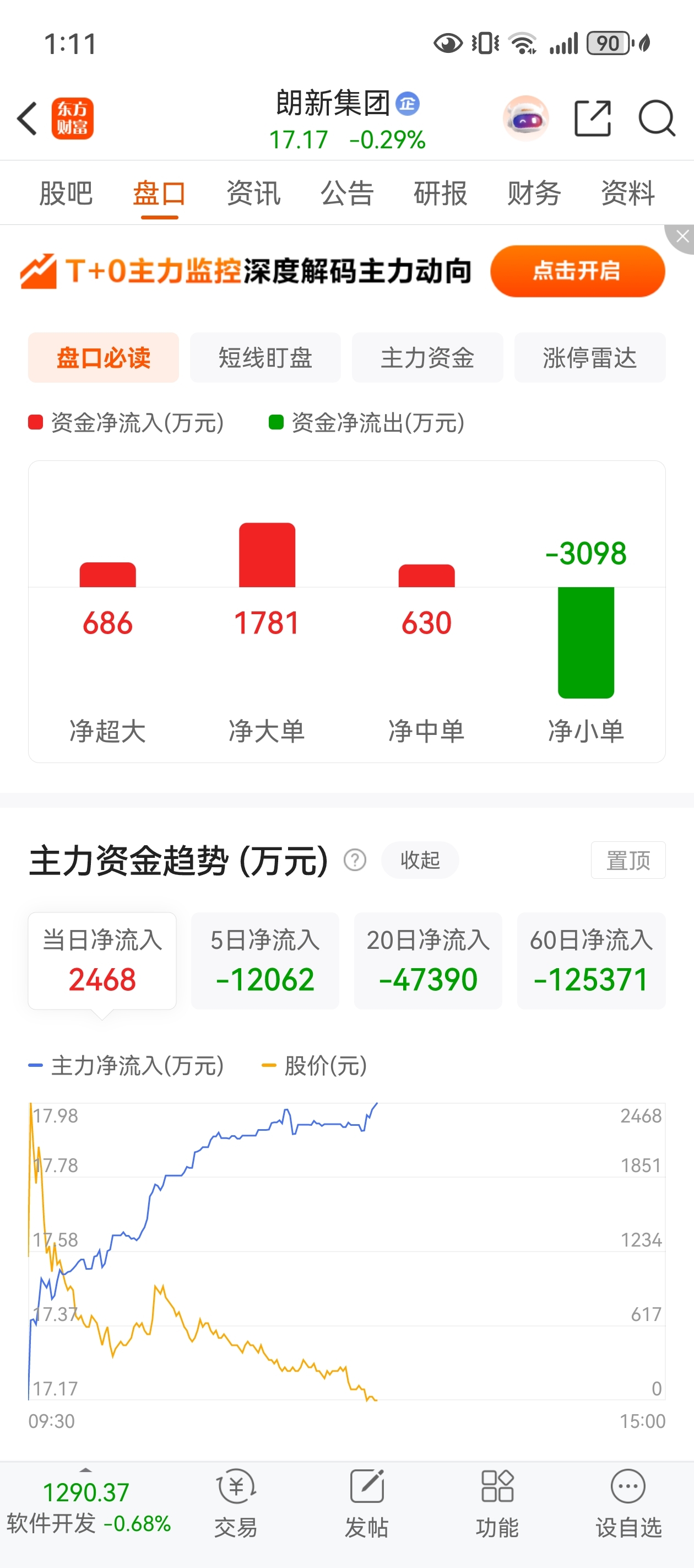 $朗新集团(SZ300682)$ 主力进来这么多资金为什么还下跌????有大神指导一下