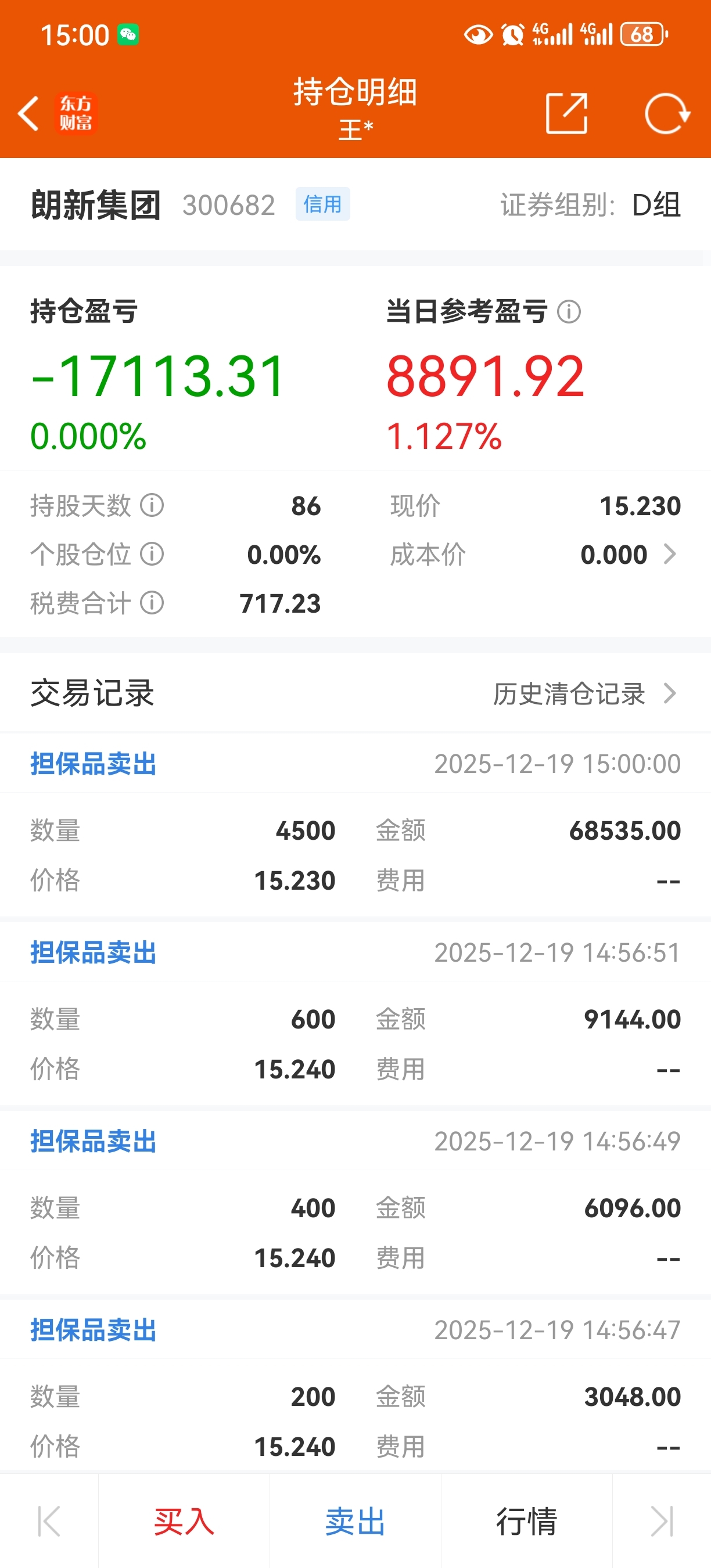 $朗新集团(SZ300682)$ 留下的加油,2天120w全部清仓