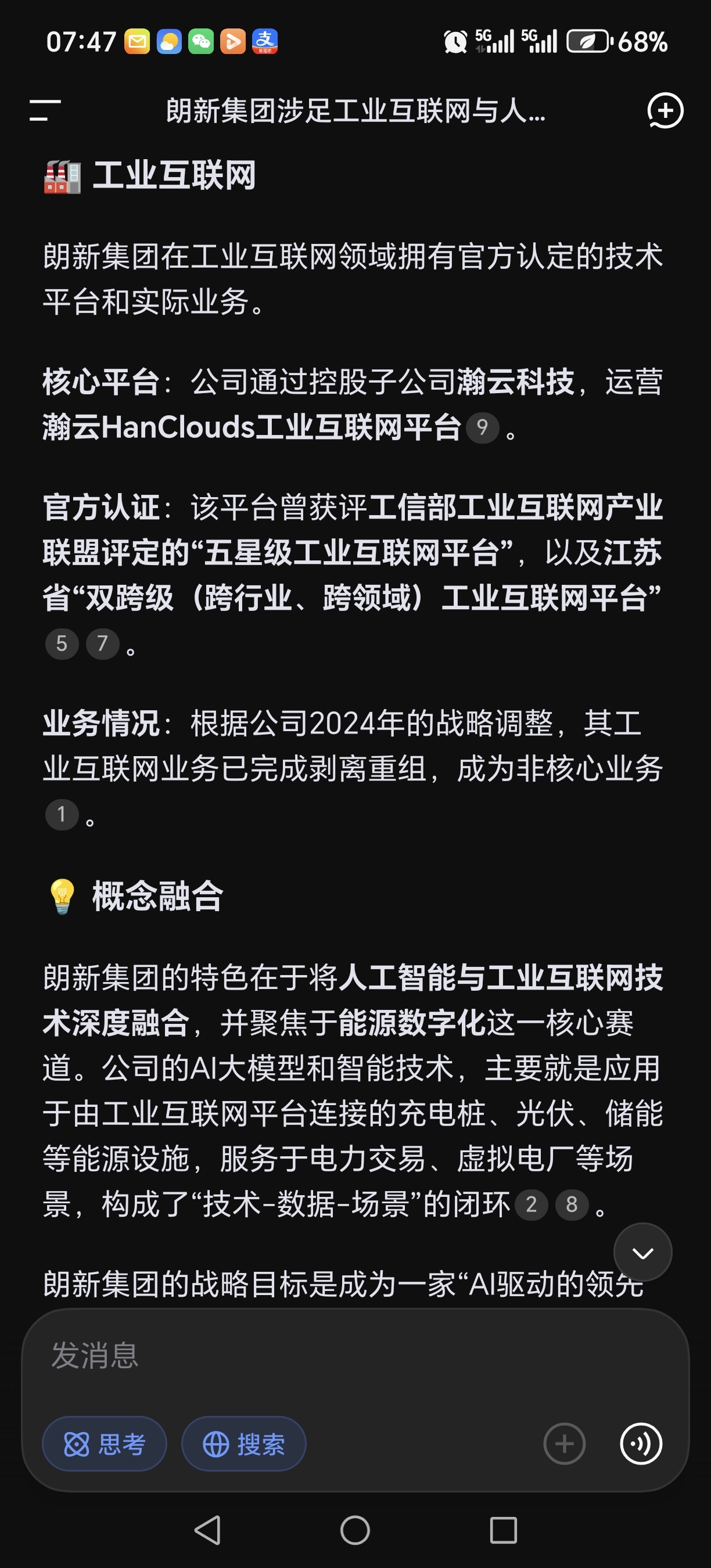 $朗新集团(SZ300682)$ 我一直以为朗新集团就是搞AI电力交易的,结果一问deepseek,他竟然是工信部官方认证的【五星级工业互联网平台】,还有人工智能。