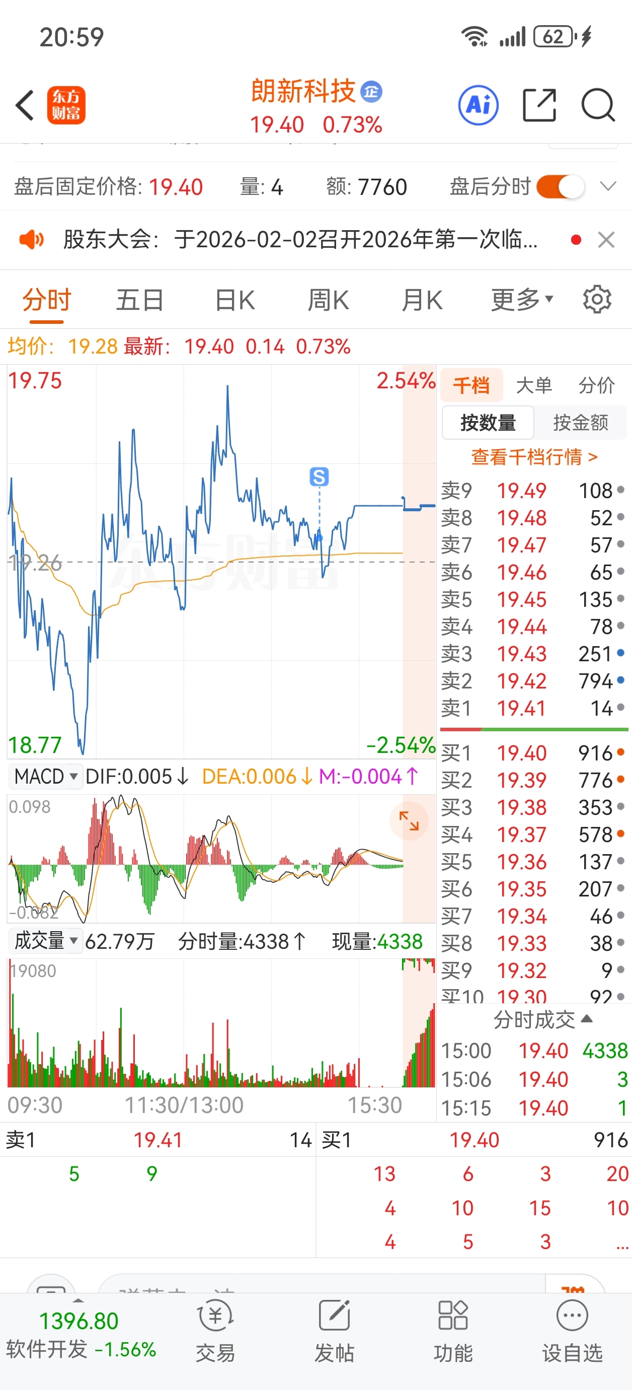 $朗新科技(SZ300682)$ 尾盘跑的,比亏损好