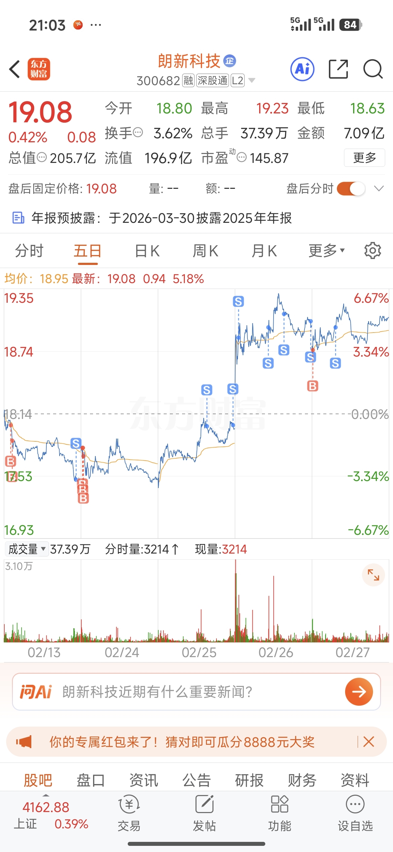 $朗新科技(SZ300682)$ 明天低开就可以接回来了爽