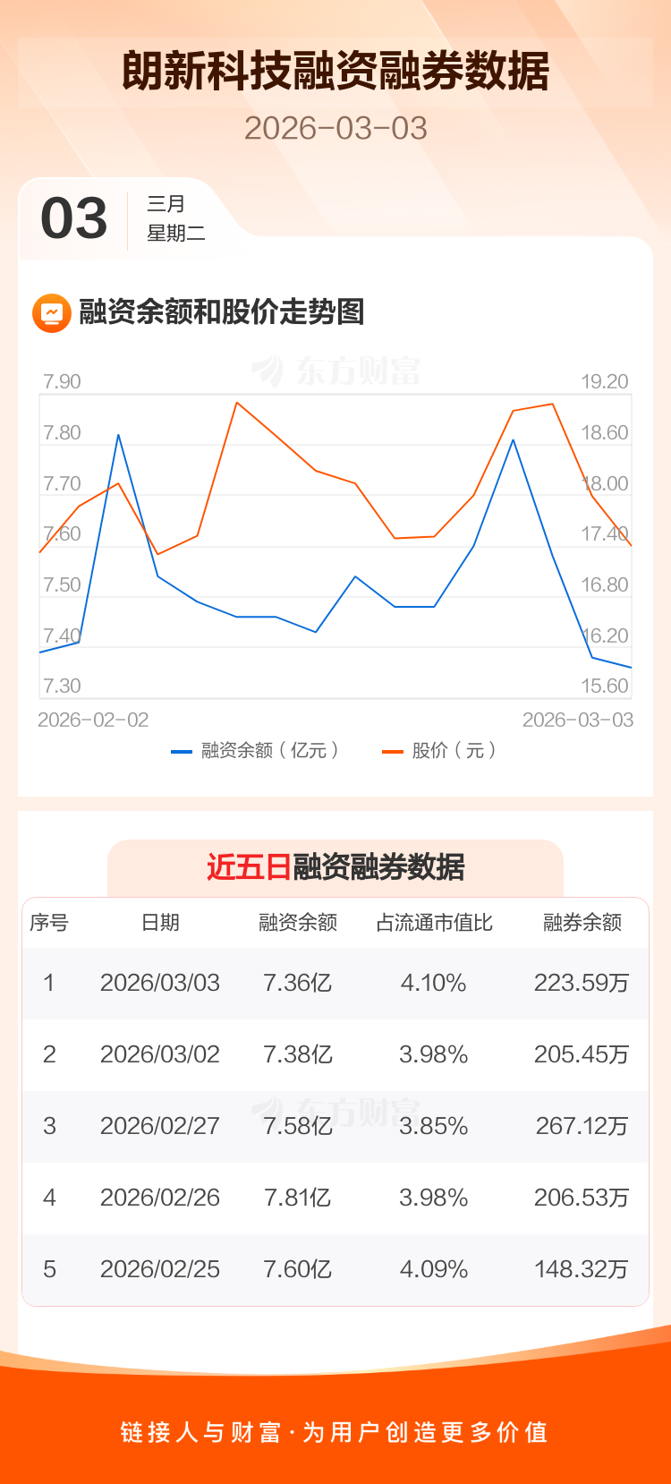 交易所最新数据显示,朗新科技于2026年3月3日获融资买入6110.64万元,融资偿还6313.65万元,当日融资净偿还203.01万元。目前,该股融资余额7.36亿,占流通市值比例为4.10%。