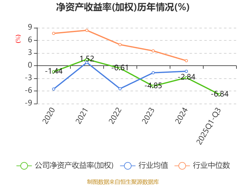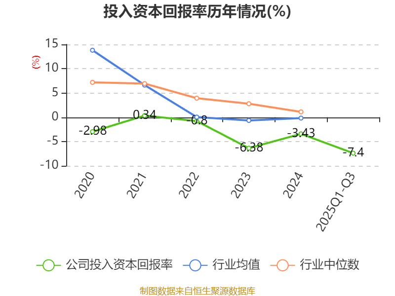 盈利能力方面, 2025年前三季度公司加权平均净资产收益率为-6.84%,同比下降5.22个百分点。公司2025年前三季度投入资本回报率为-7.4%,较上年同期下降5.23个百分点。