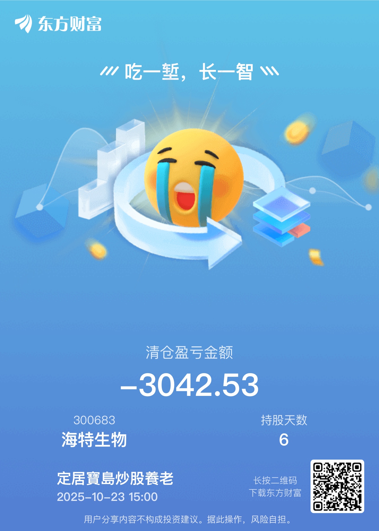 $海特生物(SZ300683)$ 早上割了,今天破位得掉头往下了,认赔割肉。