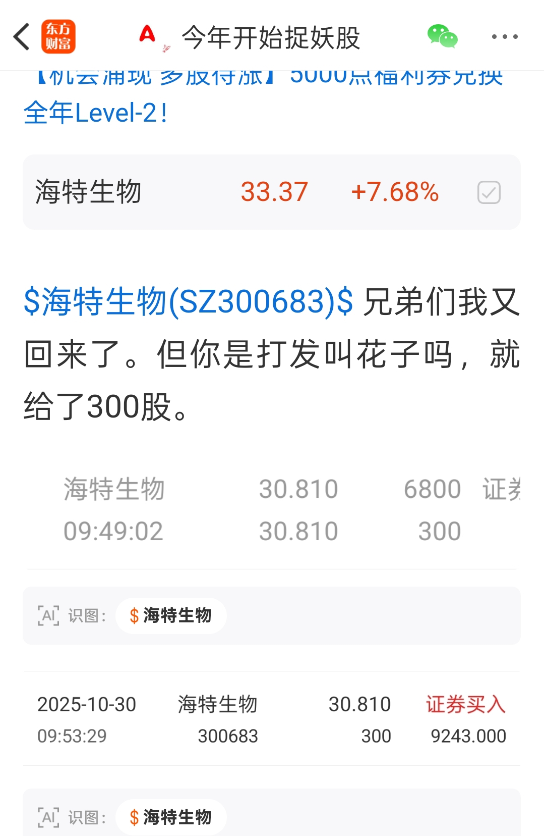 $海特生物(SZ300683)$ 可惜昨天就抢到300股。先走了。留下发财。记住我还会回来的。