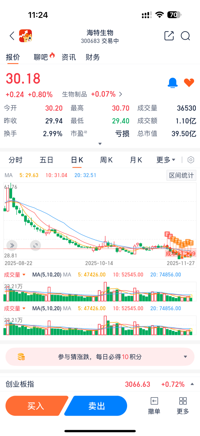 $海特生物(SZ300683)$ 什么时候能把成本T回来啊