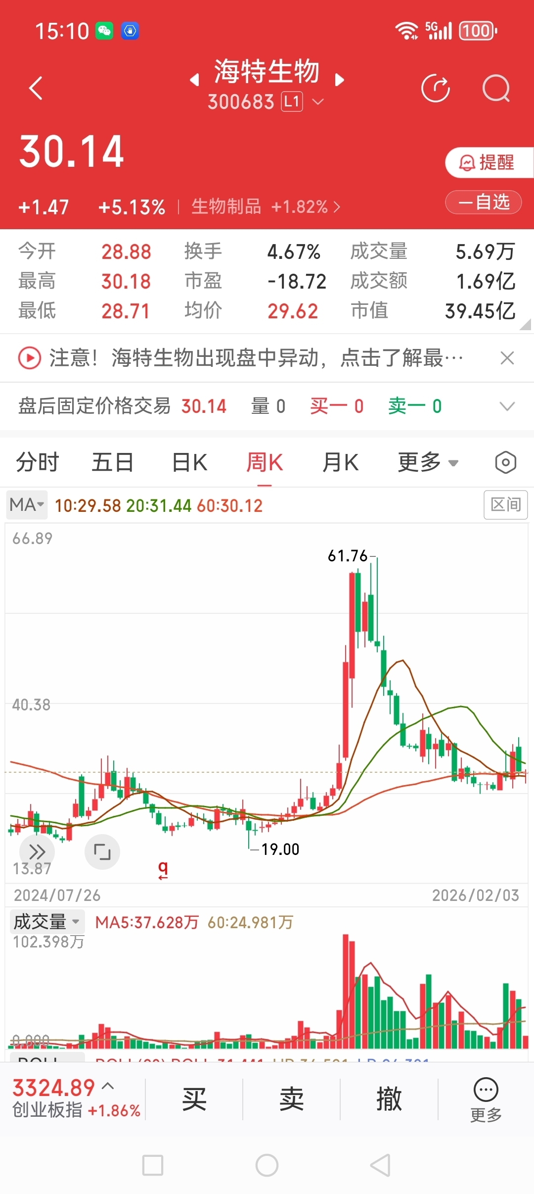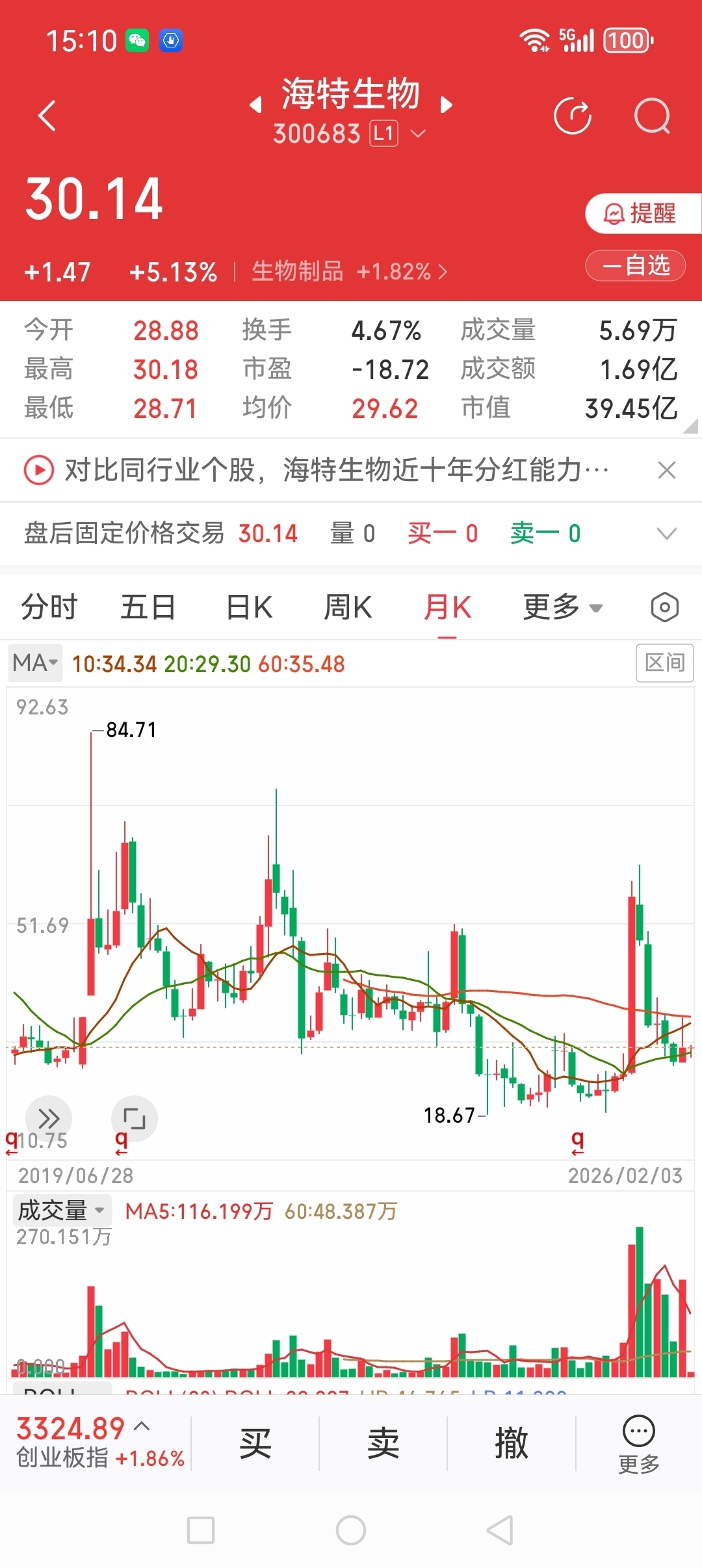 $海特生物(SZ300683)$ 周线有一个大波段,月线有一个特大波段。