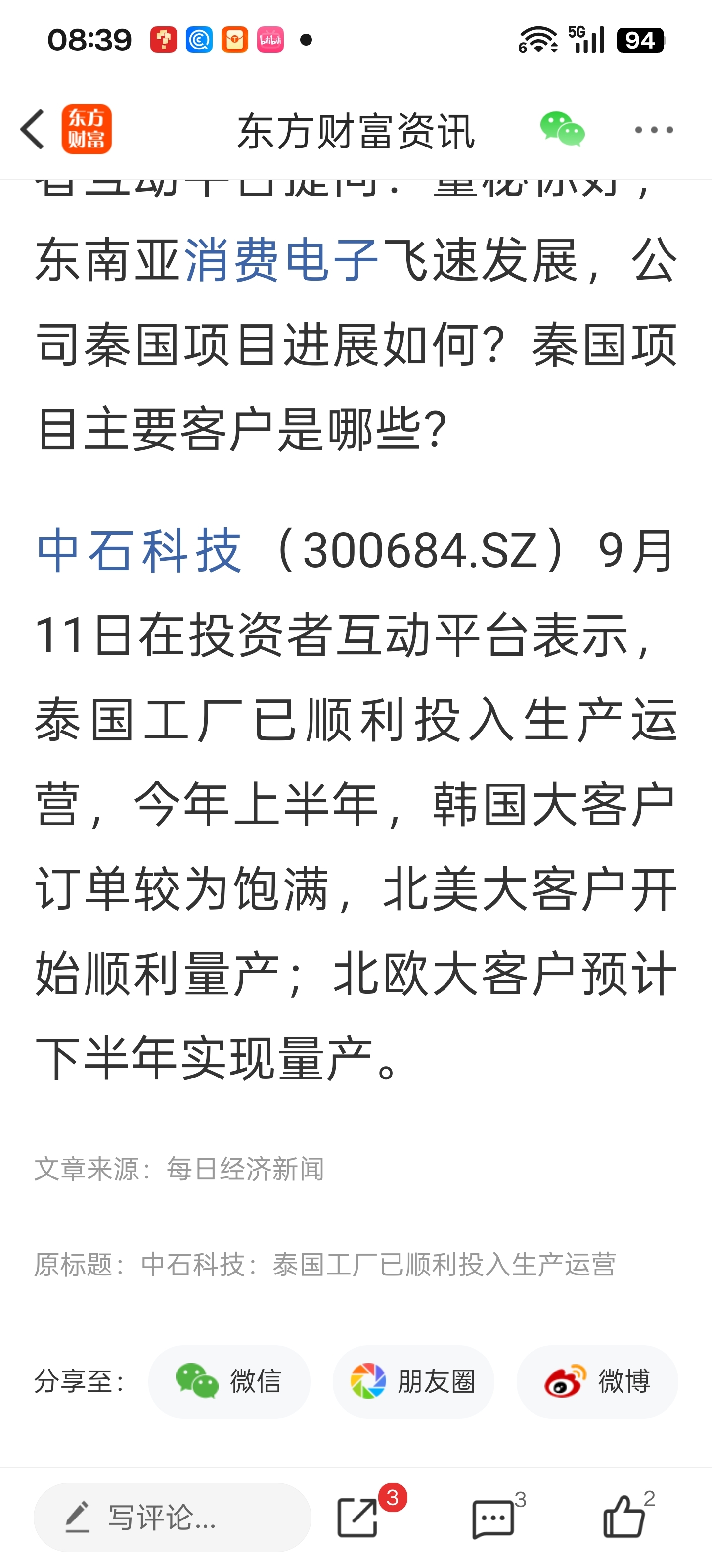 $中石科技(SZ300684)$ 中石科技,北欧大客户是哪家?
