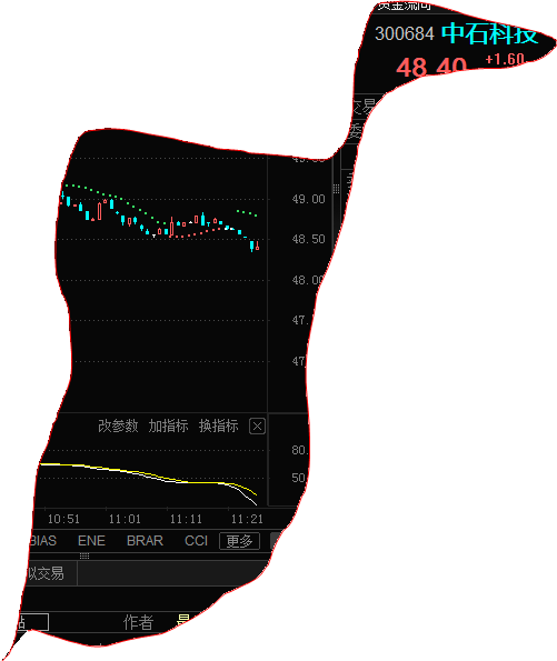 中石科技上图4个绿点向下,往下看,下图SKDJ指标白线向下是死叉,今天跌明天还要