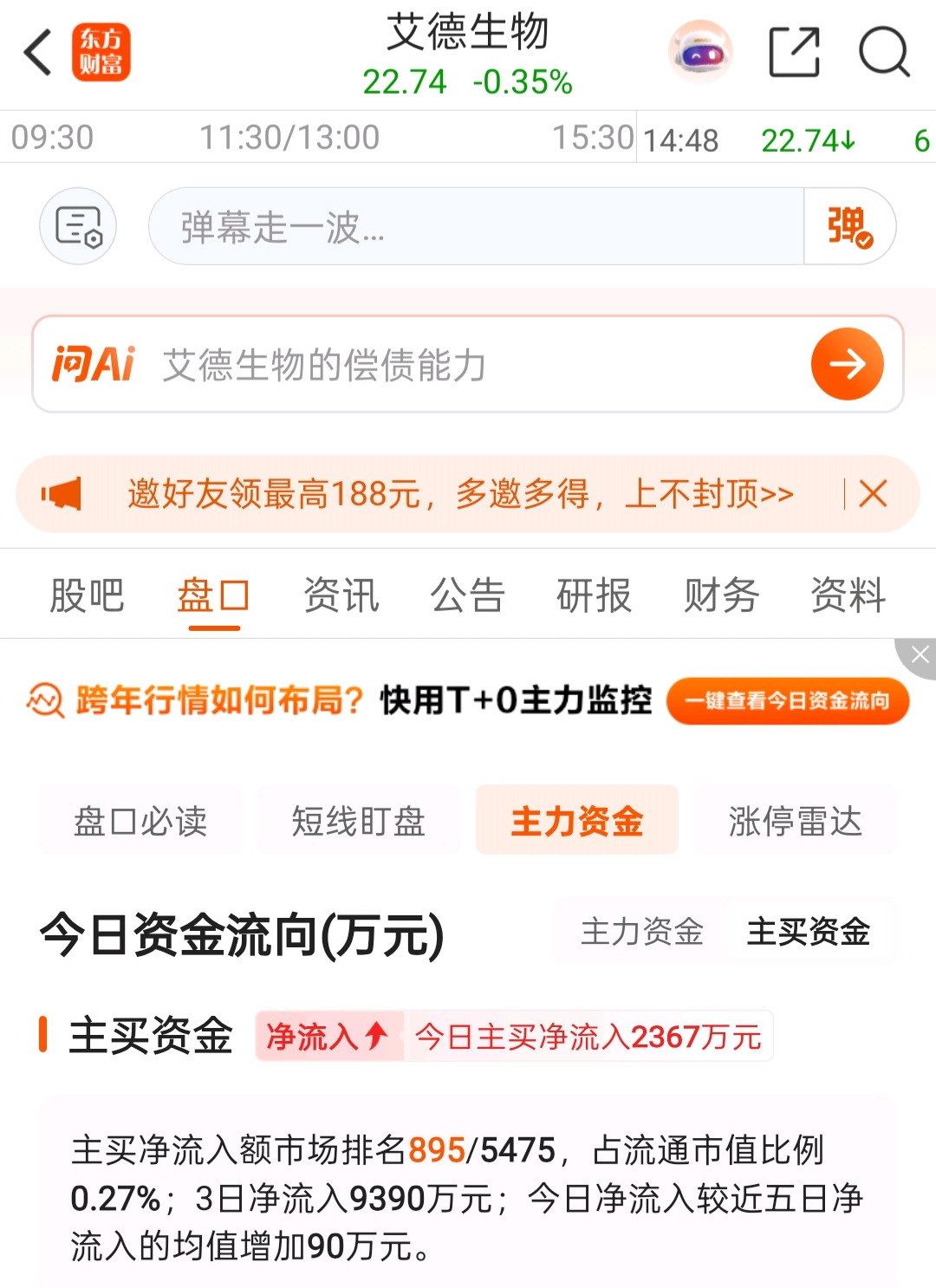 $艾德生物(SZ300685)$ 净流入两千多万,怕什么