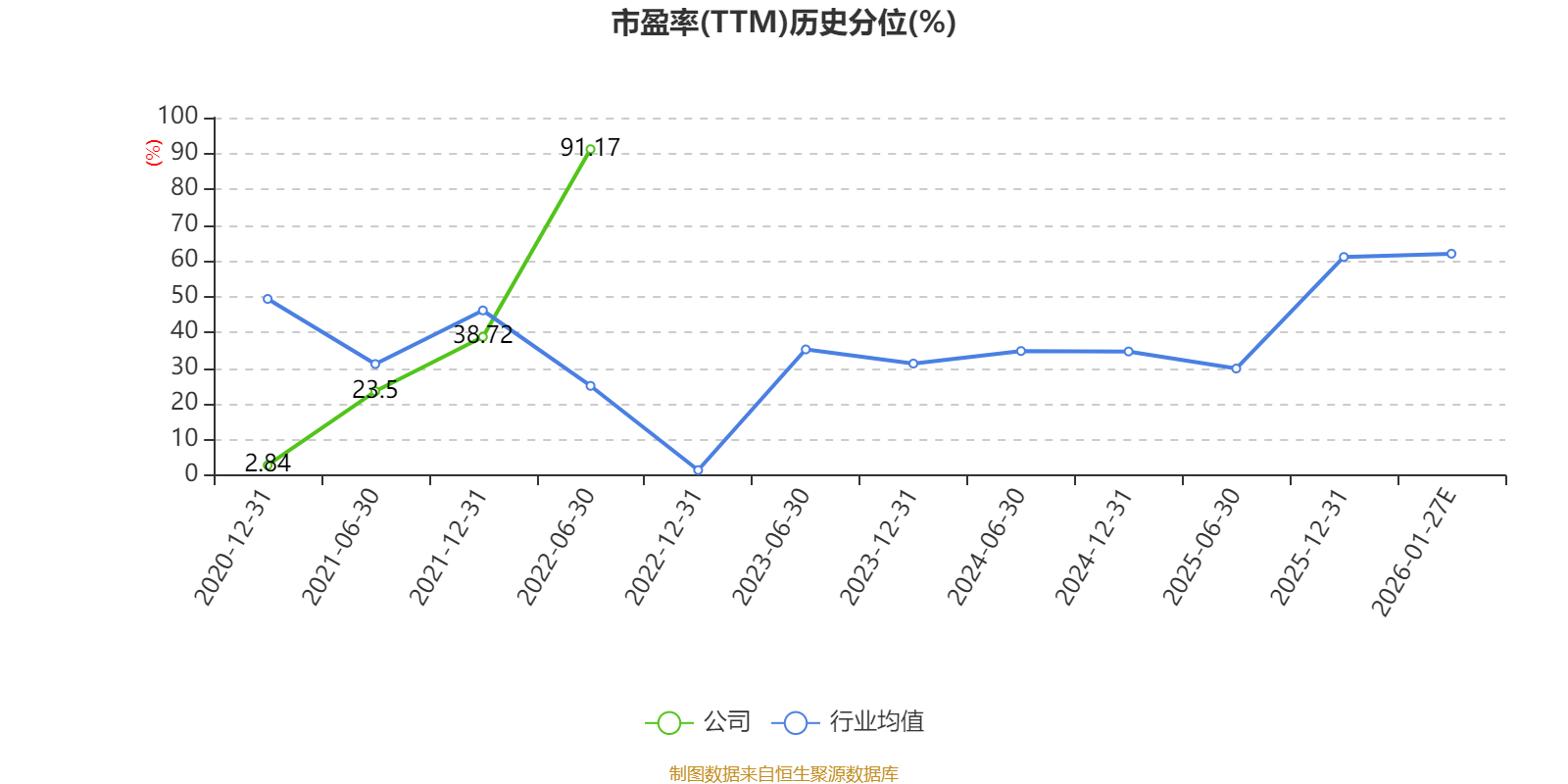 以本次披露业绩预告均值计算,公司近年市盈率(TTM)图如下所示: