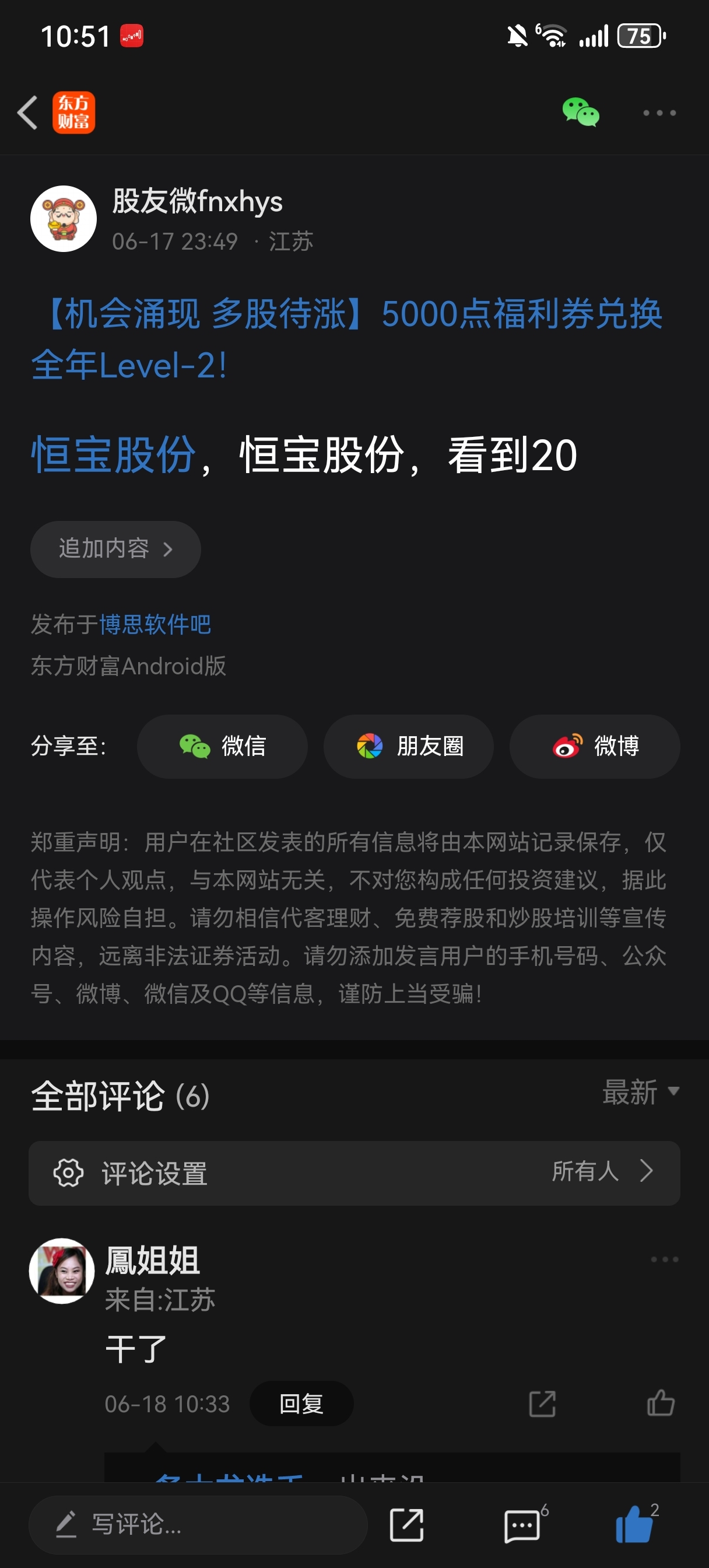 温馨提示: 1.根据《证券法》规定,禁止编造、传播虚假信息或者误导性信息,扰乱证券市场;2.用户在本社区发表的所有资料、言论等仅代表个人观点,与本网站立场无关,不对您构成任何投资建议。用户应基于自己的独立判断,自行决定证券投资并承担相应风险。《东方财富社区管理规定》