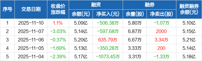 赛意信息:融资净偿还506.38万元,融资余额5.09亿元(11-10)