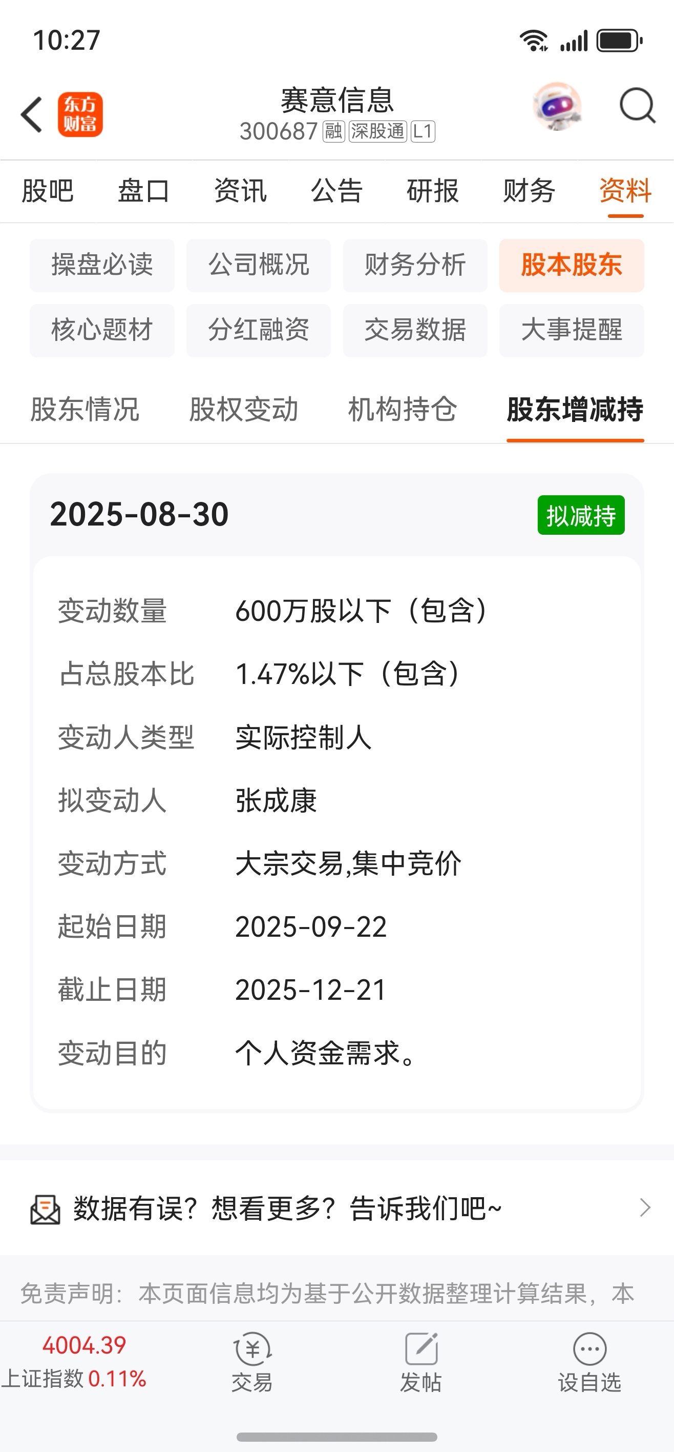 $赛意信息(SZ300687)$ 这个仆佳是否减持超过600万股?兴报这个粉肠